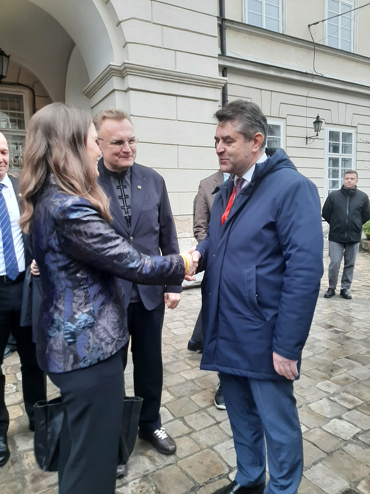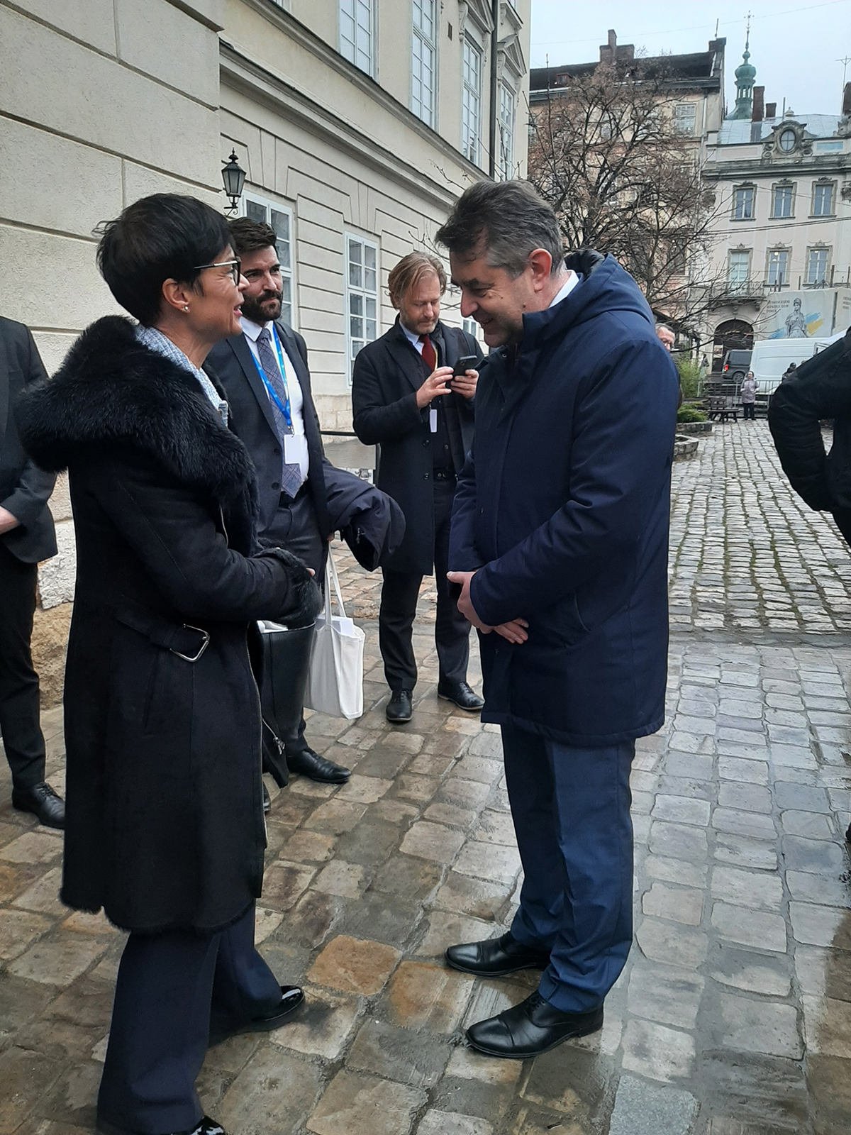 «Велика честь бути сьогодні тут, в Україні, в дуже гарному Львові, та разом з українцями. У нас сьогодні неформальна зустріч і ми зібралися тут разом, щоб висловили всебічну підтримку Україні. Хорватія є однією з тих країн, які усвідомлюють виклики, з якими сьогодні стикається Україна.